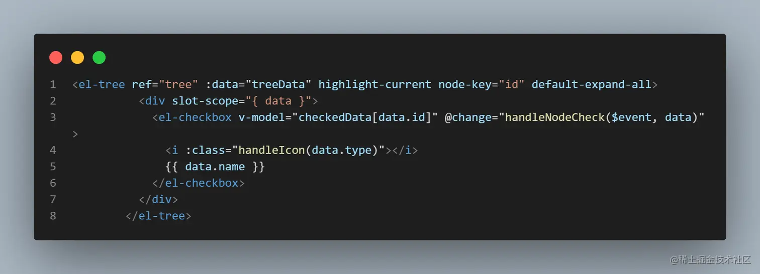 拿到这个需求就是用官方通用el-tree加根据其类型回调其图标方法,使用插槽渲染el-checkBox!