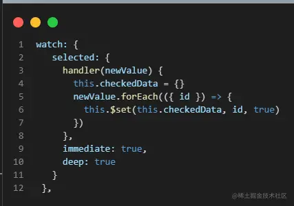 在父组件上传递已选中数据,在子组件中接收之后处理数据,其中最重要的逻辑是v-model,设置选中数据的id为true来标记数据;