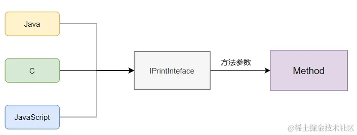 **策略模式:**传入不同语言要执行的打印代码。比如,如果是Java则传入一个IPrintInteface的实现作为要执行的动作。