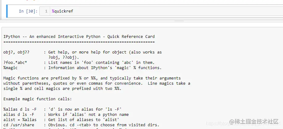 %quickref:输出所有魔法指令的简单版帮助文档