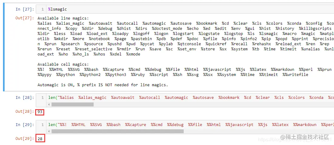 Available line magics:【对当前行使用共计93个】