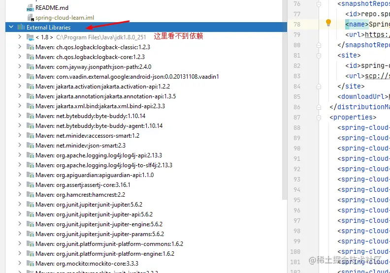 由于BOM不是一个jar包,所以你没办法在idea的依赖libary中看看到该文件