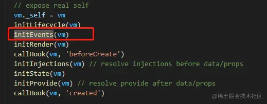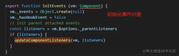 组件实例初始化的时候会调用Vue.prototype._init,vm._init中调用了initEvents