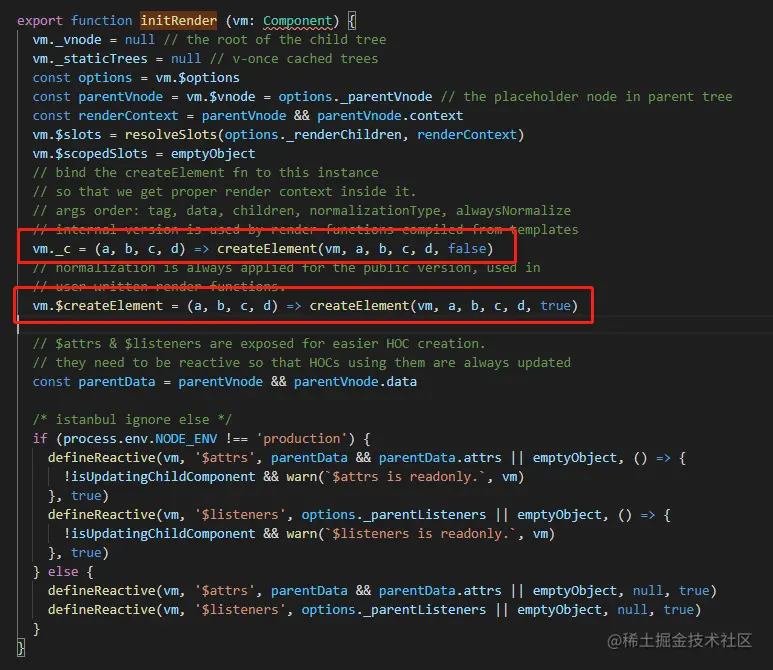 组件实例初始化的时候会调用Vue.prototype._init,vm._init中调用了initRender