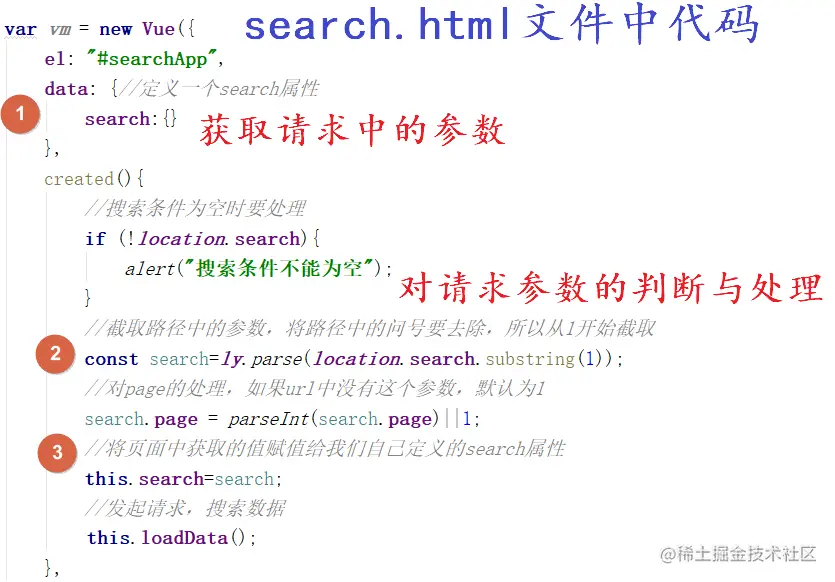 搜索框绑定了一个点击事件,点击搜索按钮时会调用search方法。