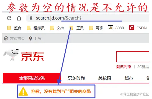 我们可以观察下像淘宝京东这样的电商网站,如果Url中的参数为空时会怎样: