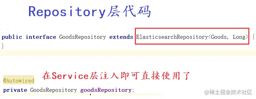 只不过在索引库搜索中是使用Repository,继承ElasticsearchRepository接口即可使用了。