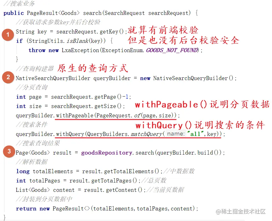 通过goodsRepository调用search查询,参数即为queryBuilder调用build()方法。