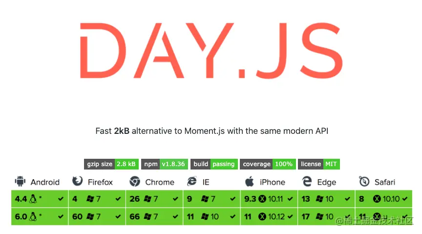 Day.js 是一个轻量的 JavaScript 时间日期处理库,与 Moment.js 的 API 设计保持一致。