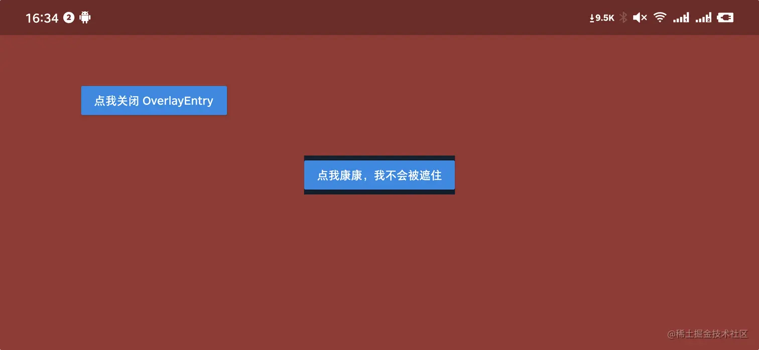 那么如何在 Flutter 页面上盖一个浮层呢?翻了一下 Flutter 的 API 文档,找到了两个法宝,分别是 Overlay 和 OverlayEntry。两者的使用方法如下。