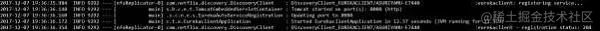 现在,应用已经在 Tomcat 8080 端口启动,且 Eureka 客户端应用已经被注册到 Eureka 服务器,如下所示:
