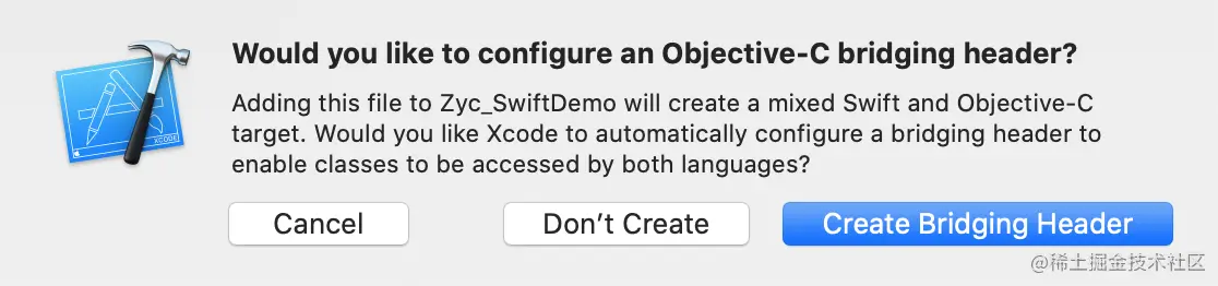 - 在新建OC类的时候Xcode会给出提示创建桥接文件,这个桥接文件中是OC需要暴露给Swift的内容,如引用OC头文件#import "ZycOCViewController.h"