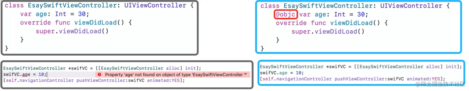 使用@objc修饰需要暴露给OC的成员