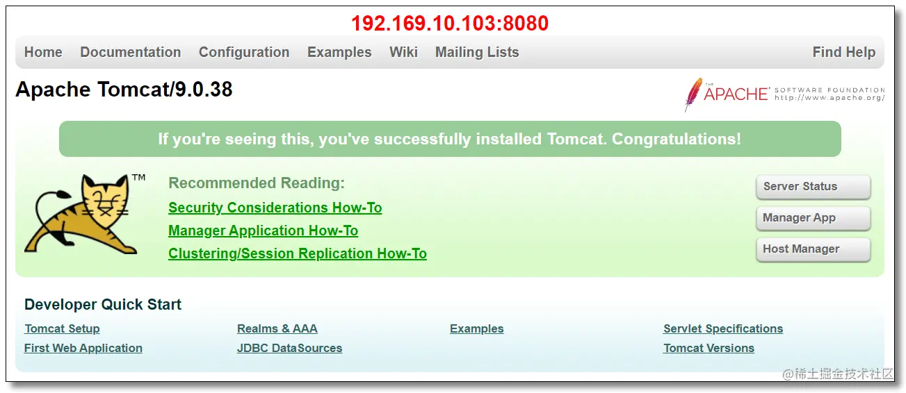 启动 Tomcat 以后,浏览器访问:http://192.168.10.102:8080/ 和 http://192.168.10.103:8080/ 结果如下: