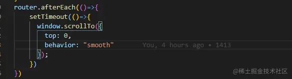 router.afterEach(()=>{ setTimeout(()=>{ window.scrollTo({ top: 0, behavior: "smooth" }); }) })