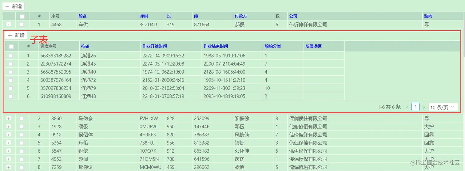 客户需求:列表erp风格和内嵌风格都支持,即包含正常列表数据,同时可以展开看子表数据,子表可展开或收起;