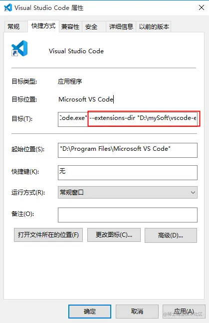 --extensions-dir "D:\mySoft\vscode-extensions\extensions"