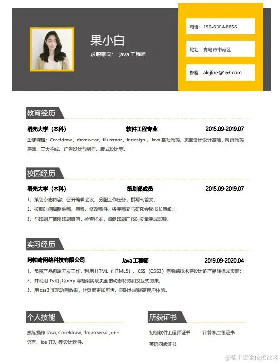 java应届生通用求职简历
