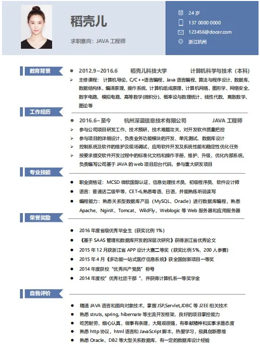Java工程师1-3年经验求职简历