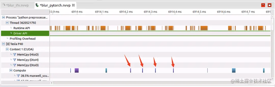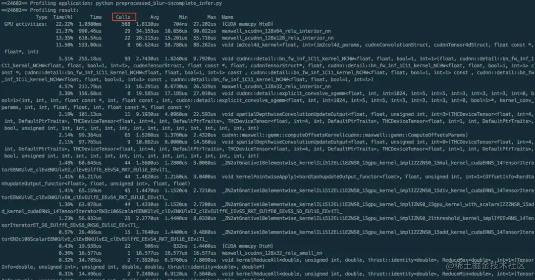 下面是针对子网络部分 nvprof 得到的结果: