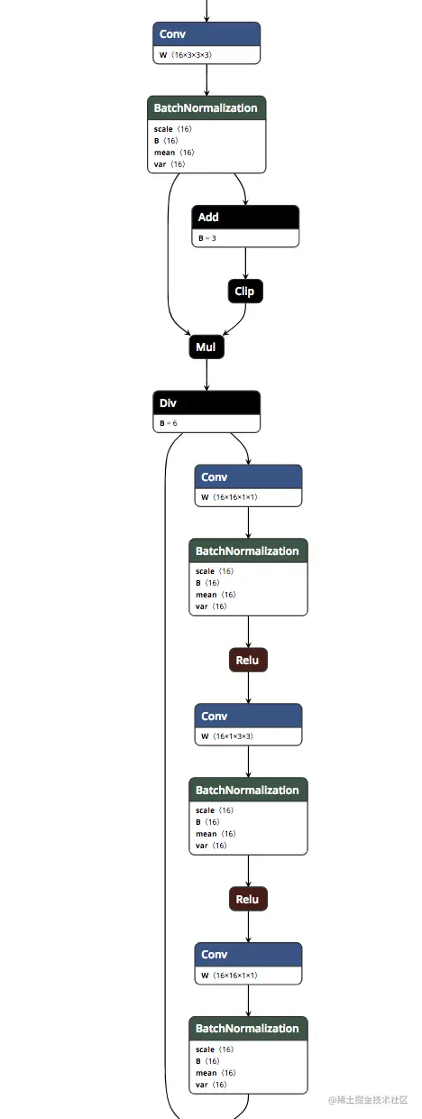 mobilenet-v3 网络中用到了特殊的激活函数 hswish、hsigmoid,上面的四个黑色算子实现的是 hswish。