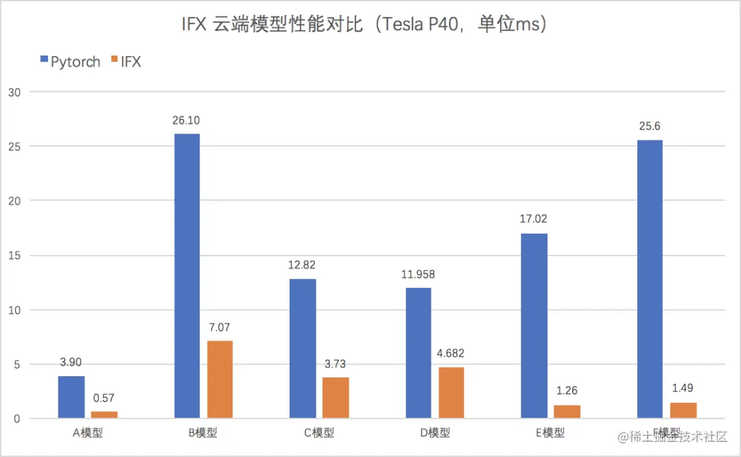 在模型从接入到上线的整个流程中,有一个必需的环节:在相同环境下评测 IFX 相比 PyTorch(1.3.1) 带来的性能收益。