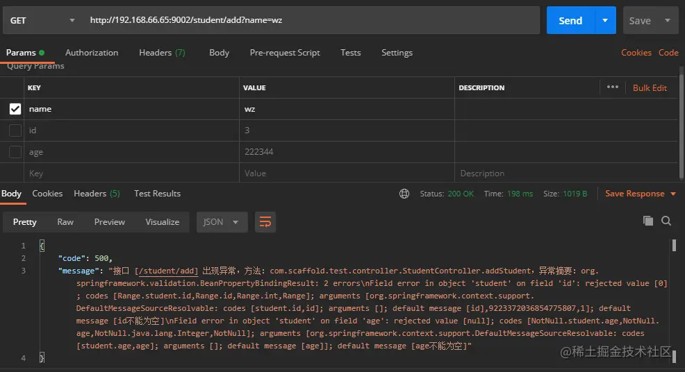 "message": "id不能为空, age不能为空"