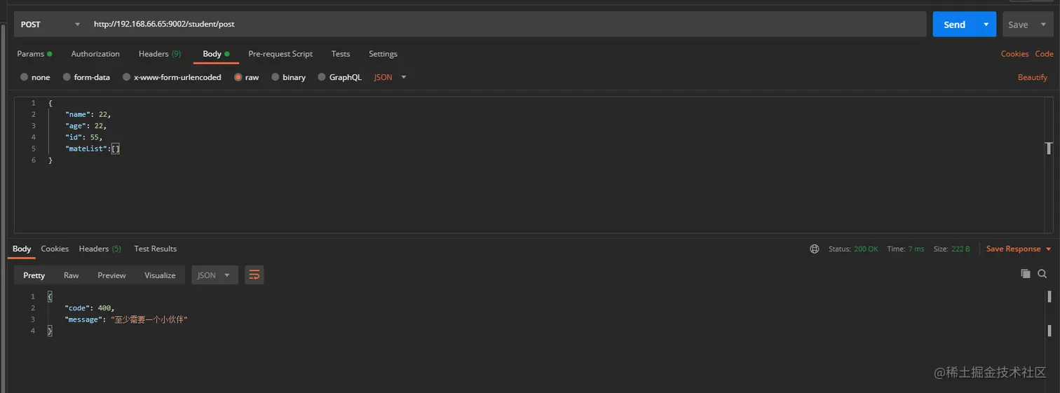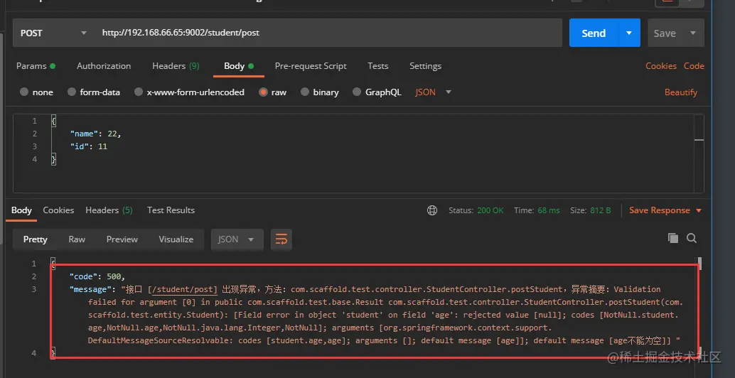 此时我们不修改其他代码,使用PostMan访问http://192.168.66.65:9002/student/post: