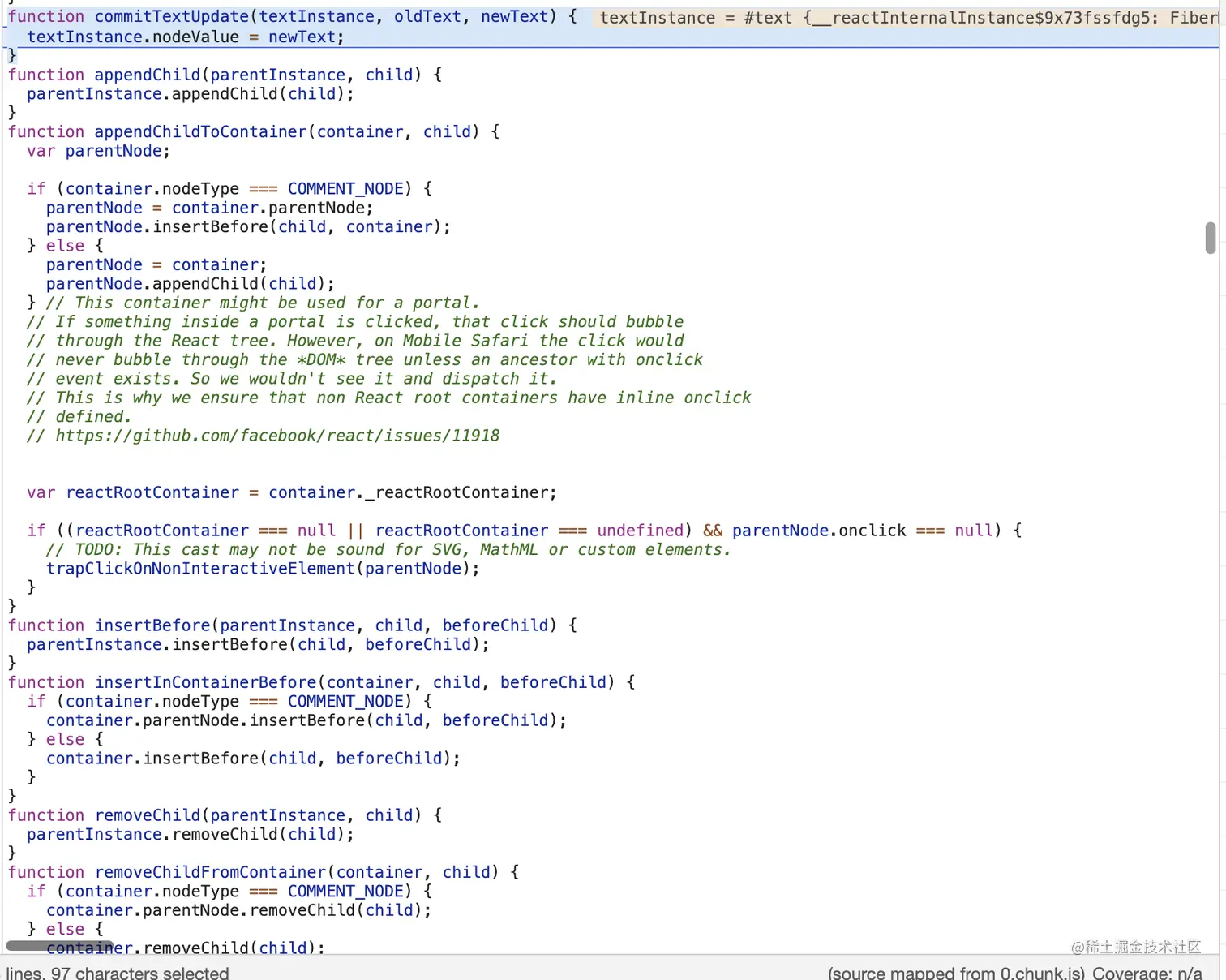 var newText = finishedWork.memoizedProps; // For hydration we reuse the update path but we treat the oldProps