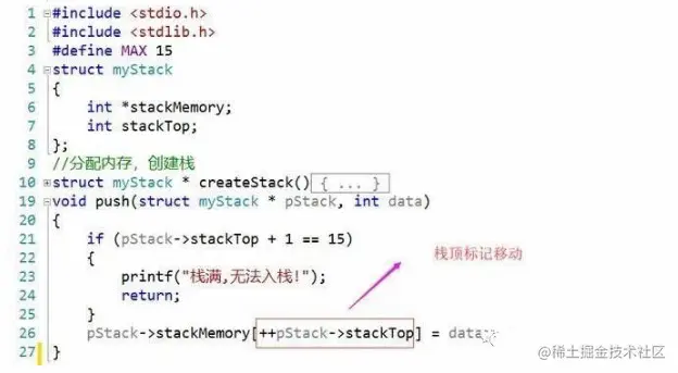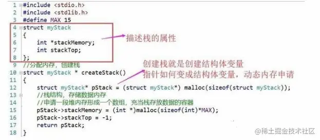 结构体定义:描述栈的属性栈:栈容量,栈顶标记
