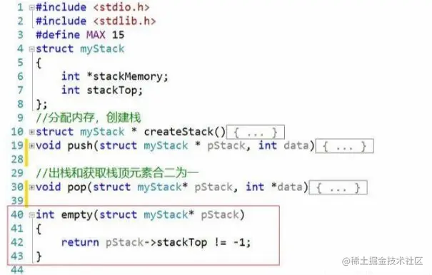 用户判断栈中是否有元素,通过栈顶标记去做即可