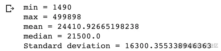 价格的最大值、最小值、平均数、中位数、标准差