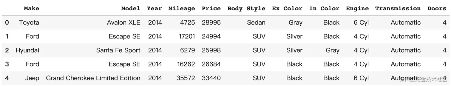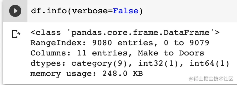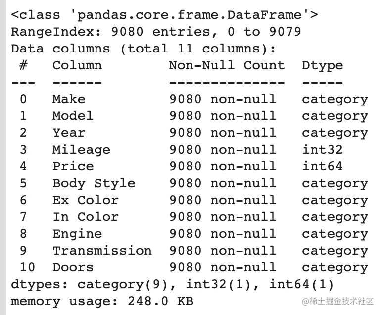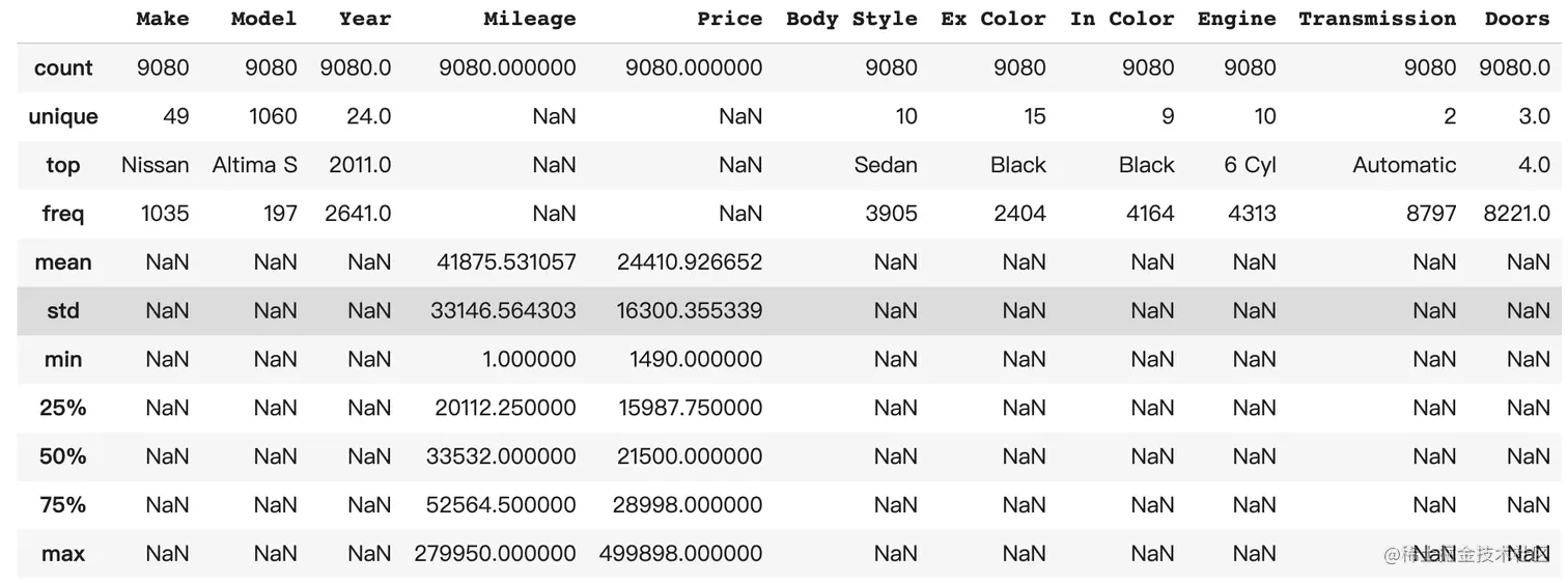 可以发现 Doors (车门数量)的类型有问题,应该是category而不是int64。