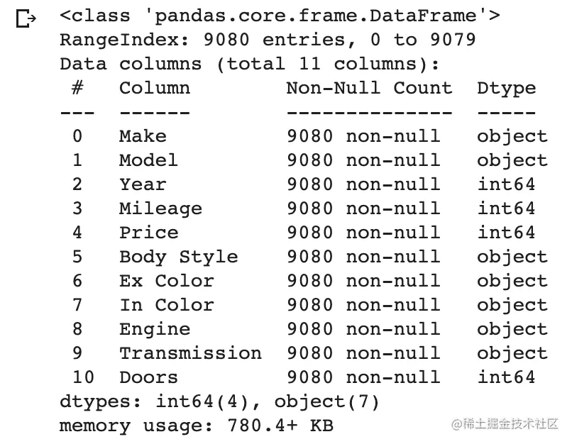 说明有9080个车信息录入系统且每个车都有11种属性。