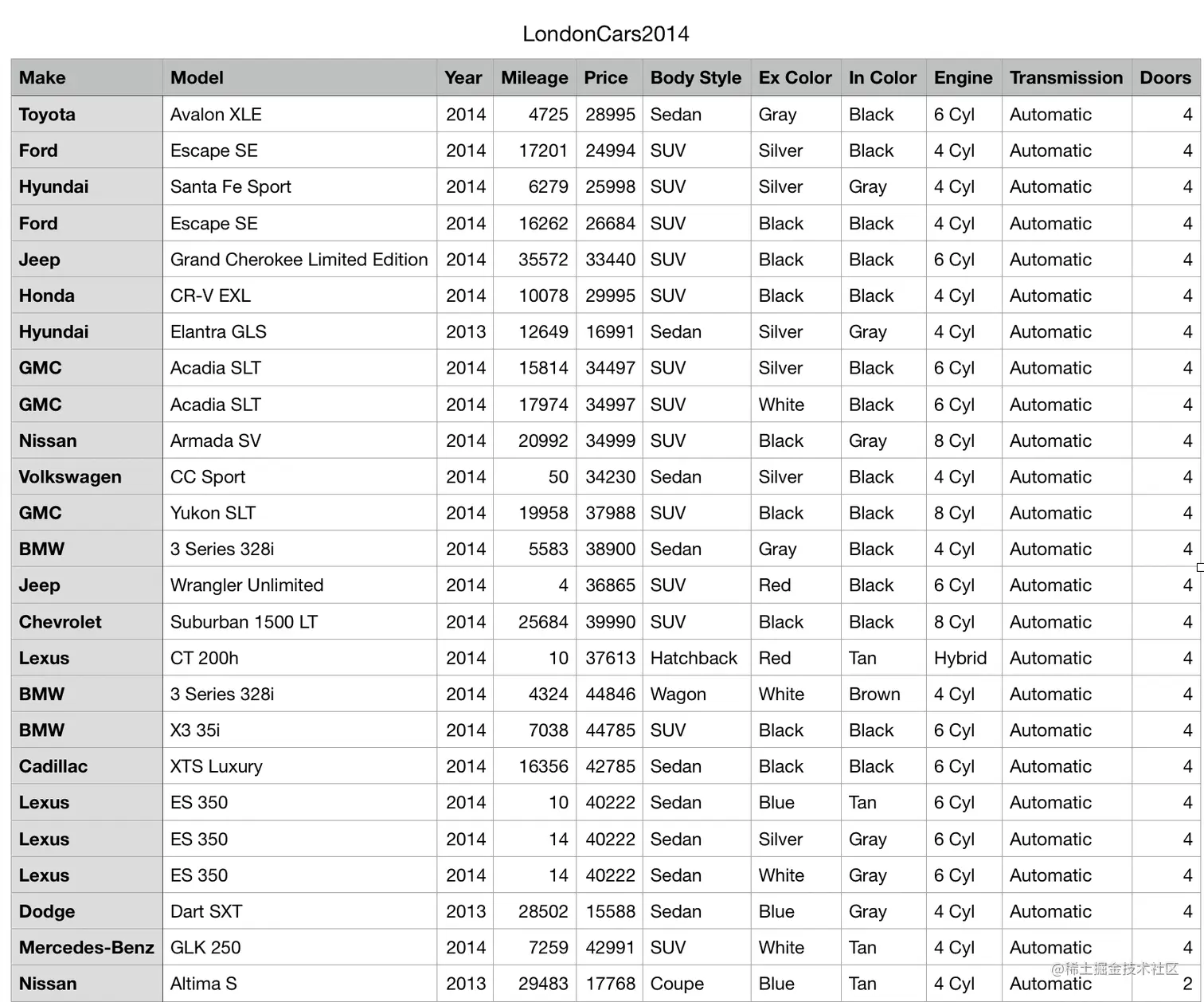 被导入的文件是2014年伦敦汽车的信息: