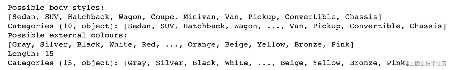 那Body Style、Ex Color的所有可能的情况分别是什么?
