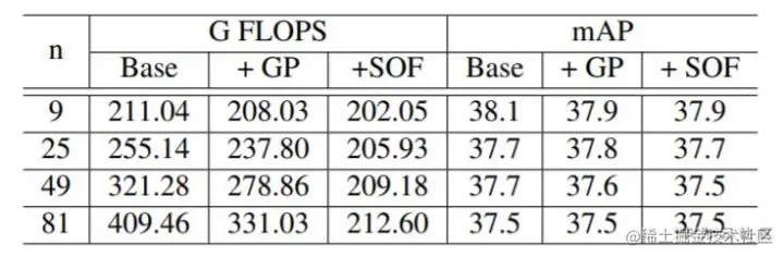 表3. Ablation Study.GP表示Group Pooling, SOF表示shared offset fields.