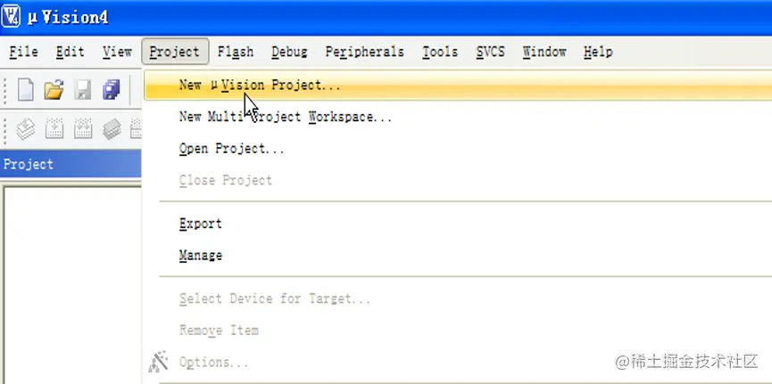 (1) 启动Keil MDK,点击菜单 New uVision Project