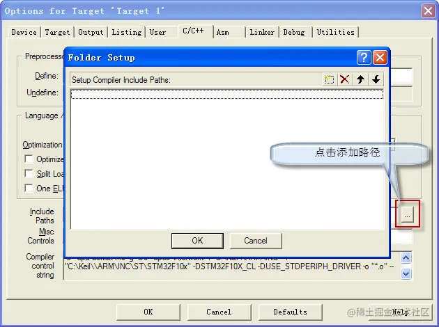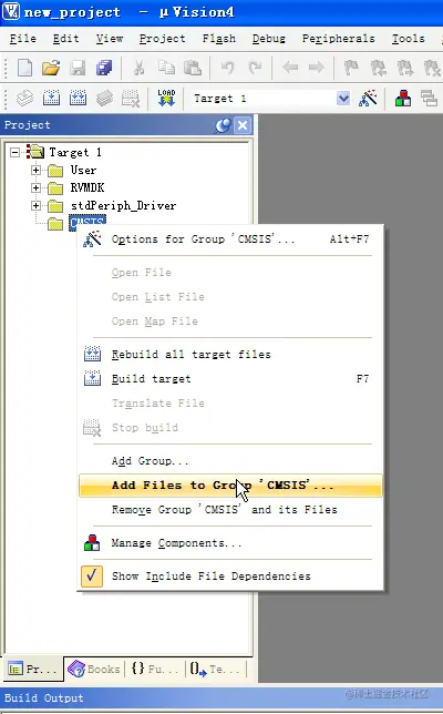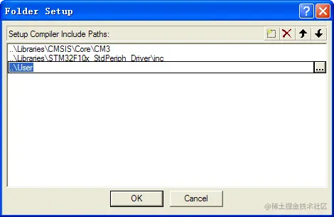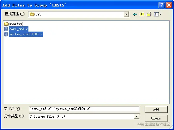 - 给CMSIS文件夹添加文件core_cm3.c、system_stm32f10x.c