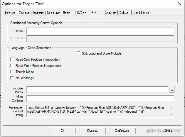 (7)asm(与汇编语言编译相关设置),默认设置