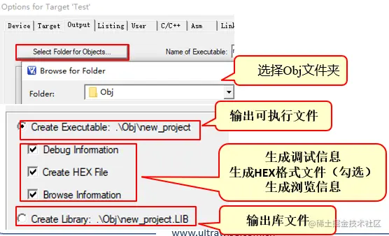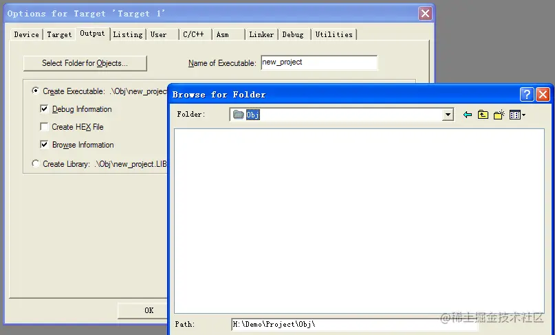 在Project下依次创建Obj和List子文件夹,存放编译过程中产生的中间文件。