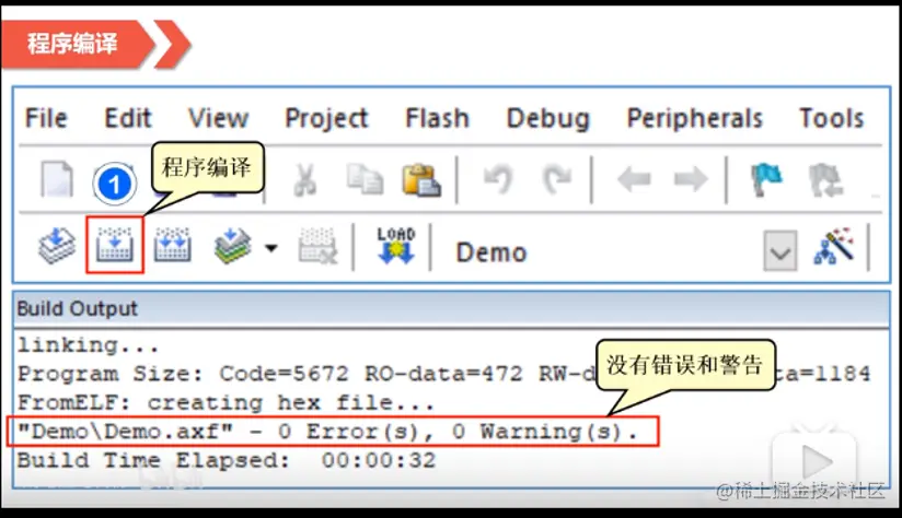 点击“Build”按钮,下方Build Output看Error和Warning