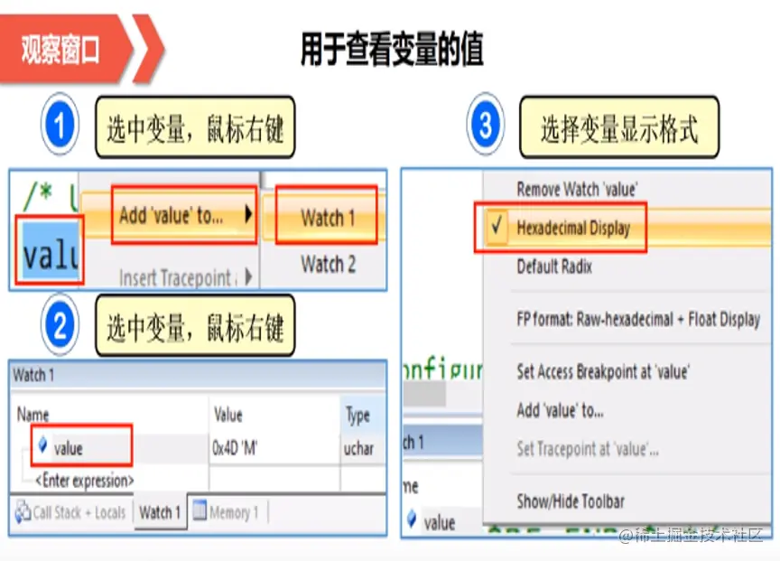 第三类方法是观察窗口,用于查看变量的值。