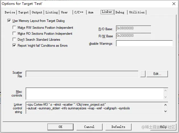 (2)Target(硬件设置),一般默认设置。