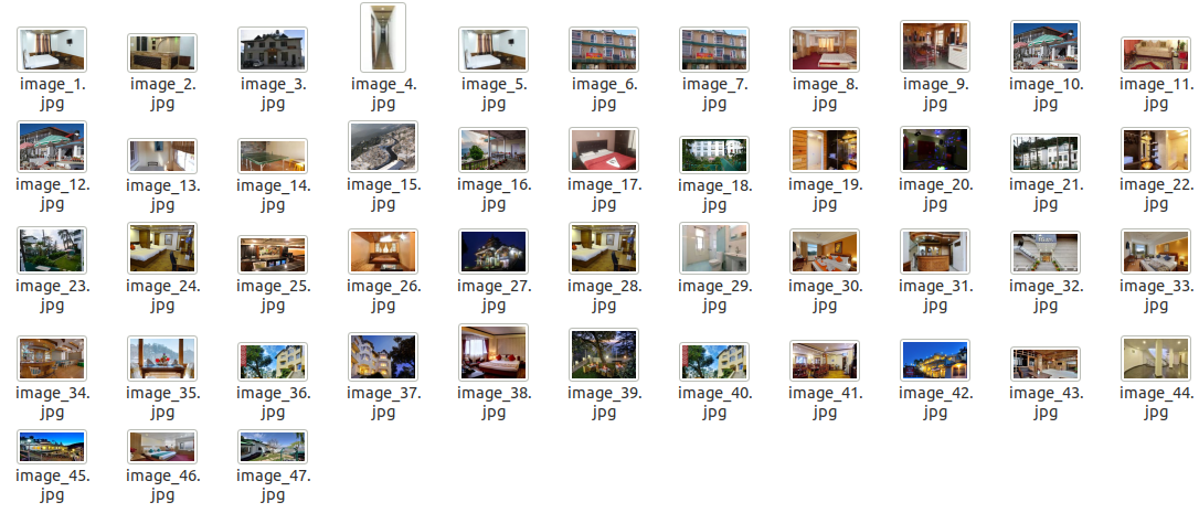 从所有图像标签中,仅选择src部分。另外,请注意,酒店图片以jpg格式提供。因此,我们将仅选择那些: