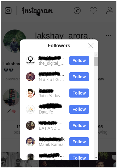 假设我们要跟踪我们的Instagram关注者,并想知道取消关注我们帐户的人的用户名。首先,登录到你的Instagram帐户,然后单击关注者以查看列表: