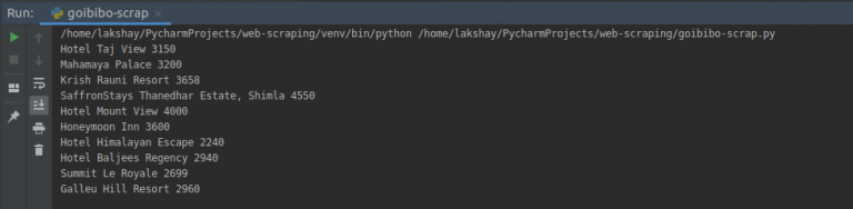 让我们详细了解这些组件。我们将通过goibibo网站抓取酒店的详细信息,例如酒店名称和每间客房的价格,以实现此目的: