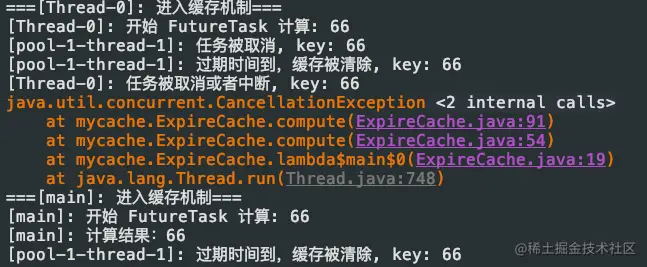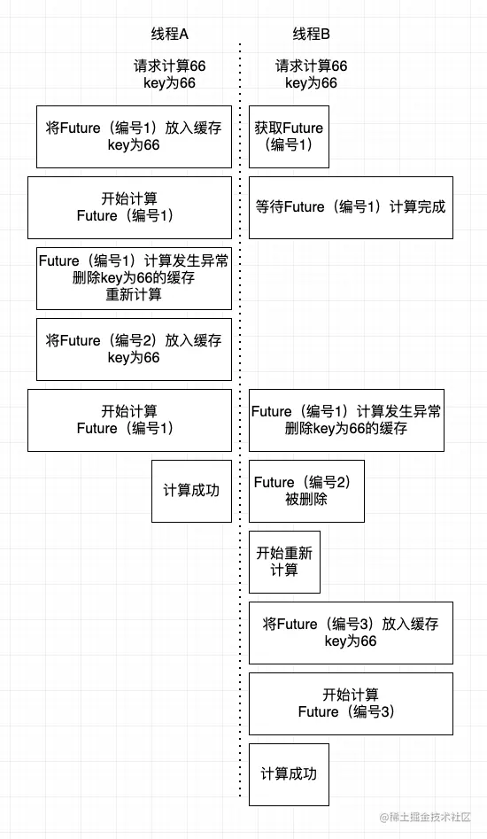 在上面代码中,我们使用了cache.remove(arg)方法来保证解决缓存污染问题,让线程去重新计算。