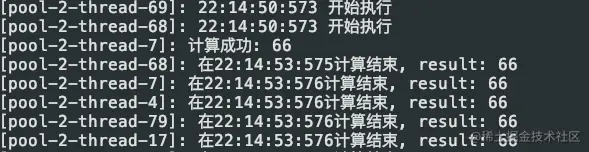 System.out.println("[" + Thread.currentThread().getName() + "]: 在" + endTime + "计算结束, result: " + result);