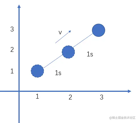 代码中的匀速直线运动 s = s1+v*t --> s=s+v s记录每一此变化后的位移 v记录速度,定值 因为每一次物体变化都是用setInterval/requestAnimationFrame进行画面更新渲染的, 可以认为每次时间都是固定的,既然固定可以认为每一次的t=1